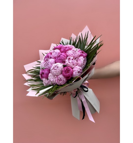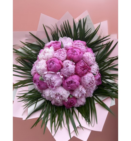 33 adet ithal şakayıklardan oluşan lüks karışık şakayık buketi.