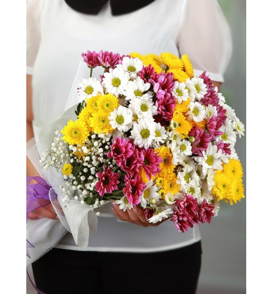 BEYAZ PAPATYA VE PEMBE KARANFİLDEN BUKET